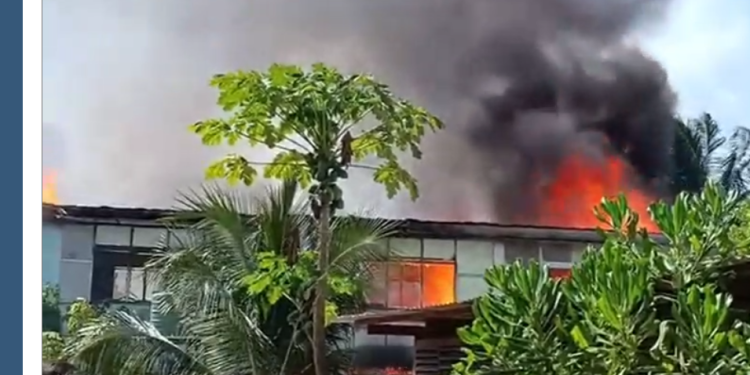 A connected block of 12 buildings owned by the Kiribati Housing Corporation in Labourline, Bikenibeu Village, was accidently engulfed in flames yesterday afternoon, resulting in significant damage.